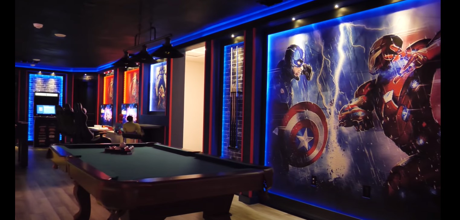Com 9 quartos, a sala possui um salão de jogos, duas salas, uma cozinha, piscina e decoração temática. Um dos cômodos tem o tema Harry Potter, outro do Mickey e da Minnie, e outro com o tema de princesas da Disney.
