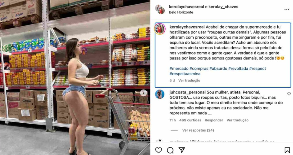 Você se lembra de um caso em que uma mulher foi expulsa de um mercado em Belo Horizonte por conta da sua vestimenta? Na época com mais de 450 mil seguidores no Instagram, a influenciadora digital, Kerolay Chaves, postou em seu Instagram que teria sido colocada para fora do mercado após ter ido fazer compras normalmente.