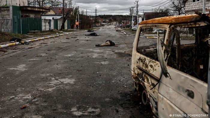 Além da atrocidade em Mariupol, outros crimes de guerra foram cometidos em território ucraniano. Os assassinatos na cidade de Bucha também chocaram o mundo. Segundo a Ucrânia, mais de 300 civis foram mortos pelos russos em Bucha; imagens das ruas da cidade mostram corpos das vítimas, muitas das quais parecem ter sido executadas depois de terem as suas mãos amarradas.