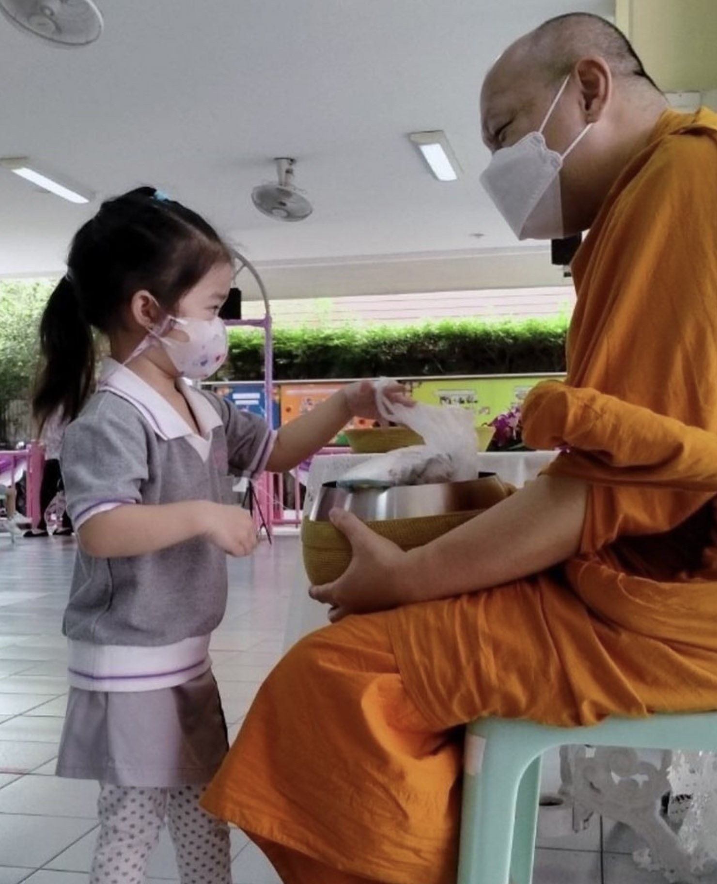เราจะได้เห็นคุณหนุ่มไปใส่บาตรตอนเช้าอยู่เป็นประจำ ตั้งแต่ที่น้องวีจิยังไม่เกิด และในตอนนี้น้องวีจิก็ได้ไปใส่บาตรเป็นเพื่อนคุณพ่อได้แล้ว