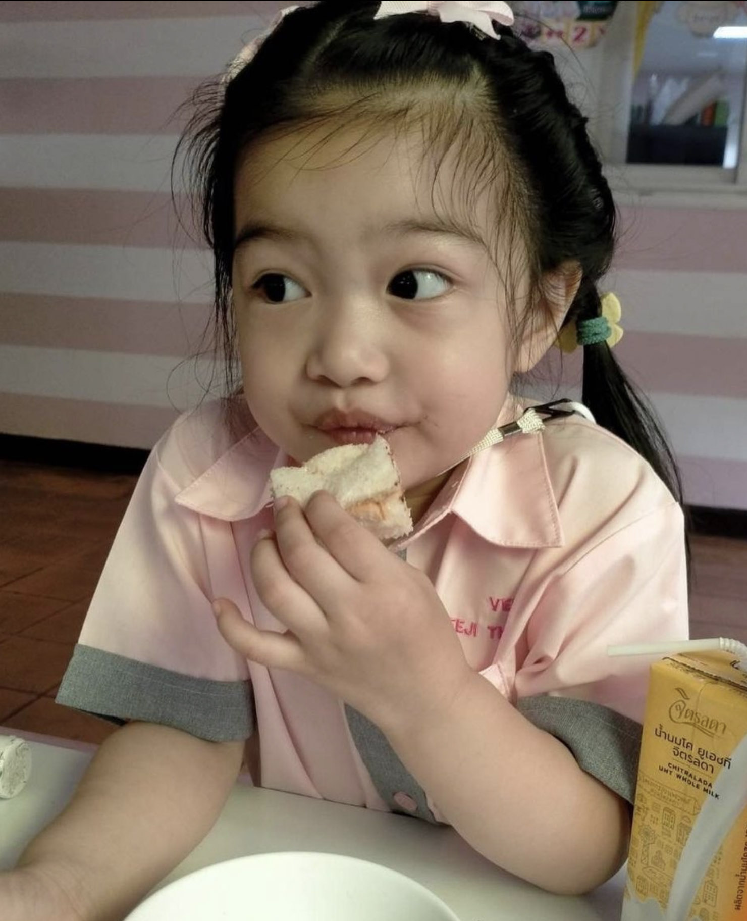 น้องวีจิทานอาหารเช้า เพื่อเตรียมตัวที่จะไปโรงเรียน และแน่นอนว่า ไม่ว่าจะเช้าสักแค่ไหน คุณหนุ่มก็จะไปส่งน้องวีจิไปโรงเรียนทุกวัน